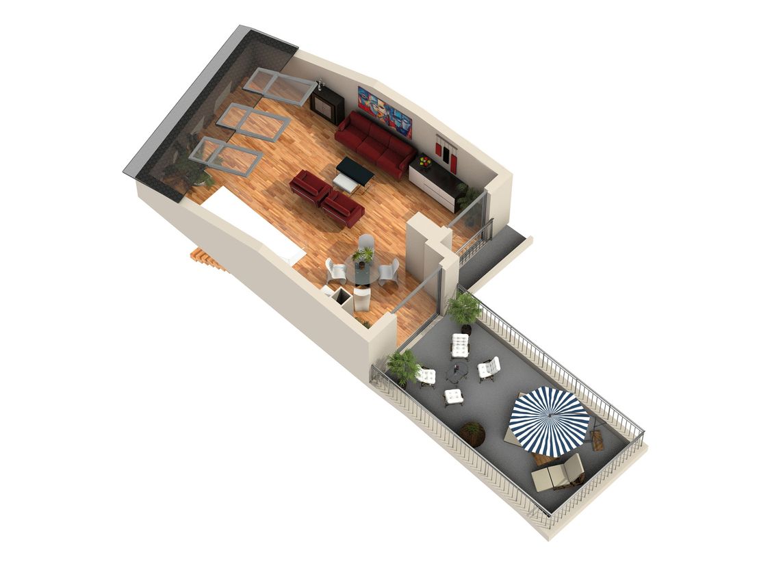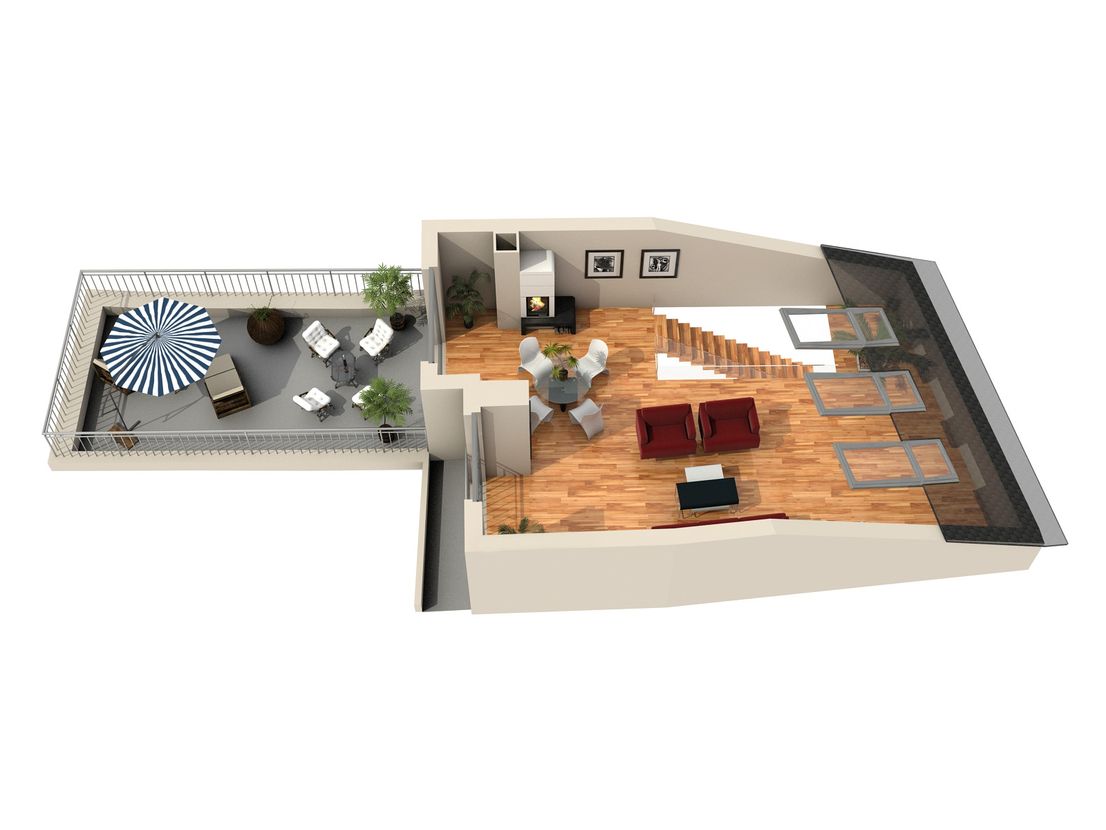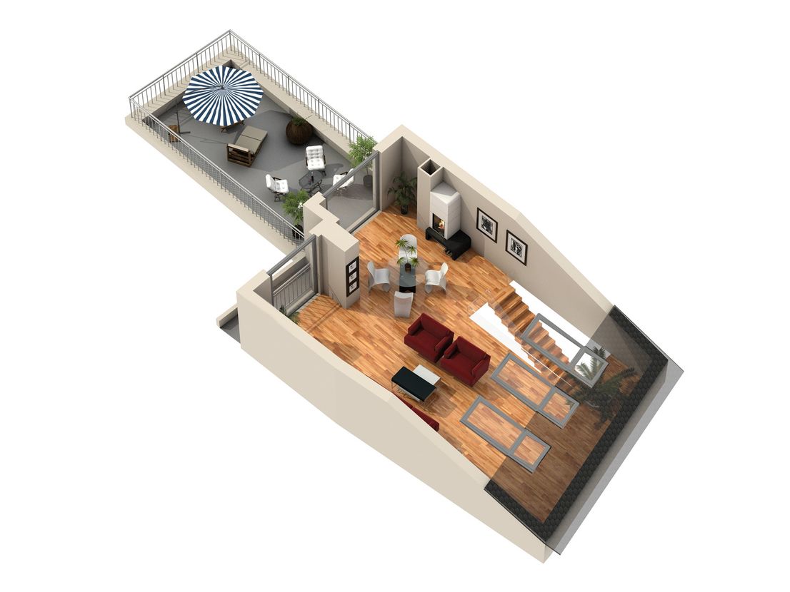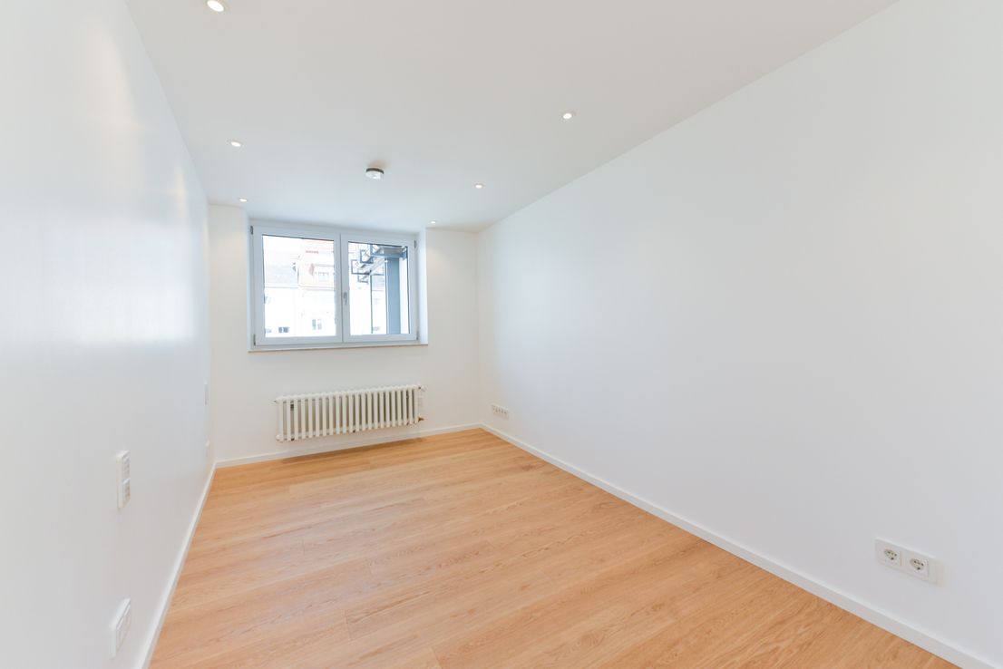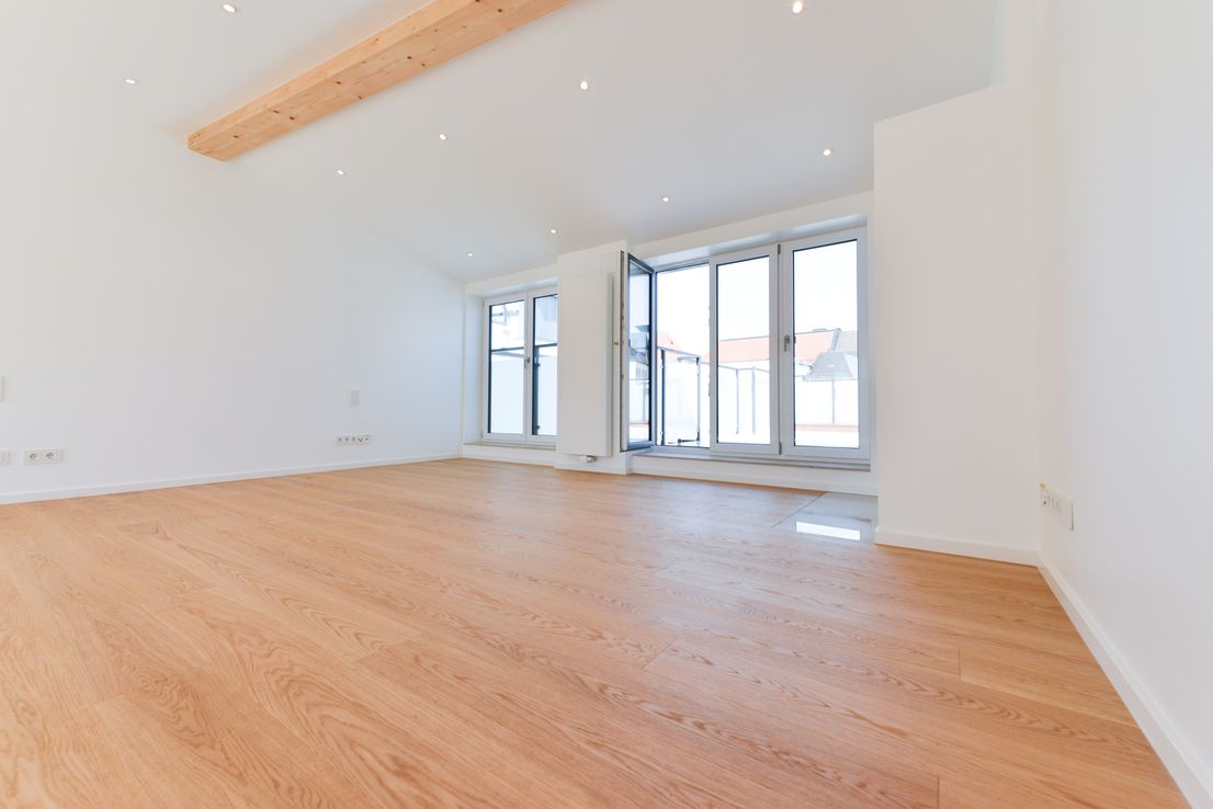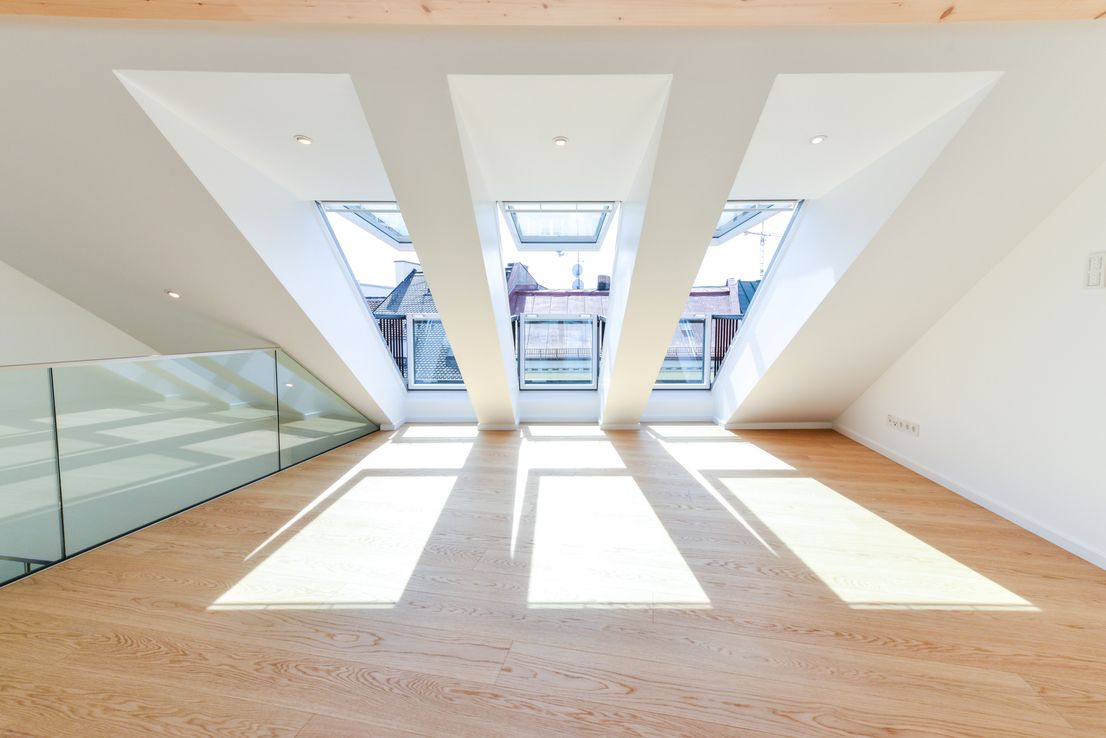 - große, raumhohe Fensterfront zum Dachterasse mit elektrischen Rollläden und energie- und schalleffizienter 3-fach-Verglasung